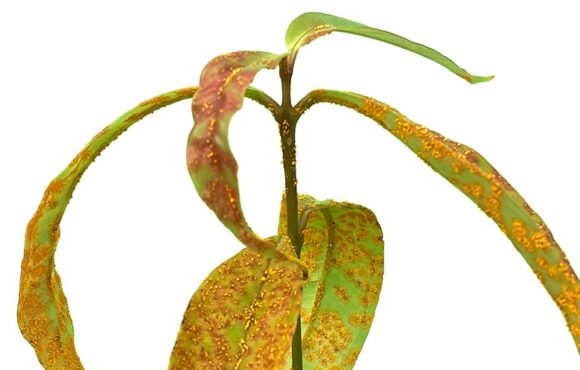 Rust fungi, some of the most economically and environmentally important plant pathogens, are amenable to double-stranded RNA (dsRNA) mediated control. However, to date, dsRNA treatments have only been applied prior to infection. In this paper, we show that a dsRNA spray can effectively prevent and cure infection by Austropuccinia psidii (cause of myrtle rust) at different stages of the disease cycle. We found that dsRNA, applied preventatively or curatively, inhibits myrtle rust disease and improves plant growth and recovery following severe infections. These findings have immediate potential in the management of the more than 10-year epidemic of myrtle rust.