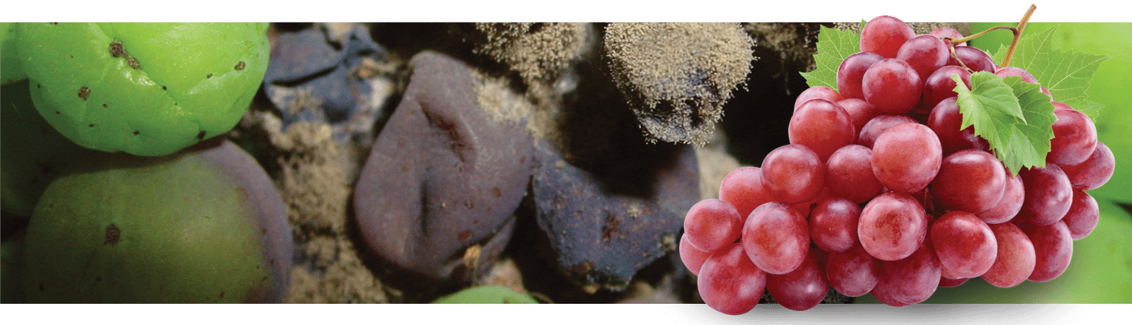 Botrytis infects grapevine tissue via wounds and natural openings, including micro fissures in the berry skin and wounds made by insects, powdery mildew, berry splitting, loose pedicels or other physical damage. Spore germination is stimulated by sugars and amino acids exuded from ripening berries.
